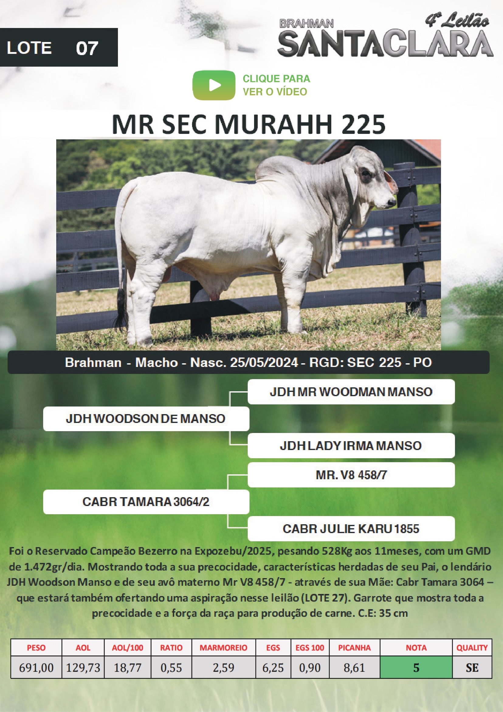 TODAS AS INFORMAÇÕES DO LOTE SÃO DE RESPONSABILIDADE DO VENDEDOR