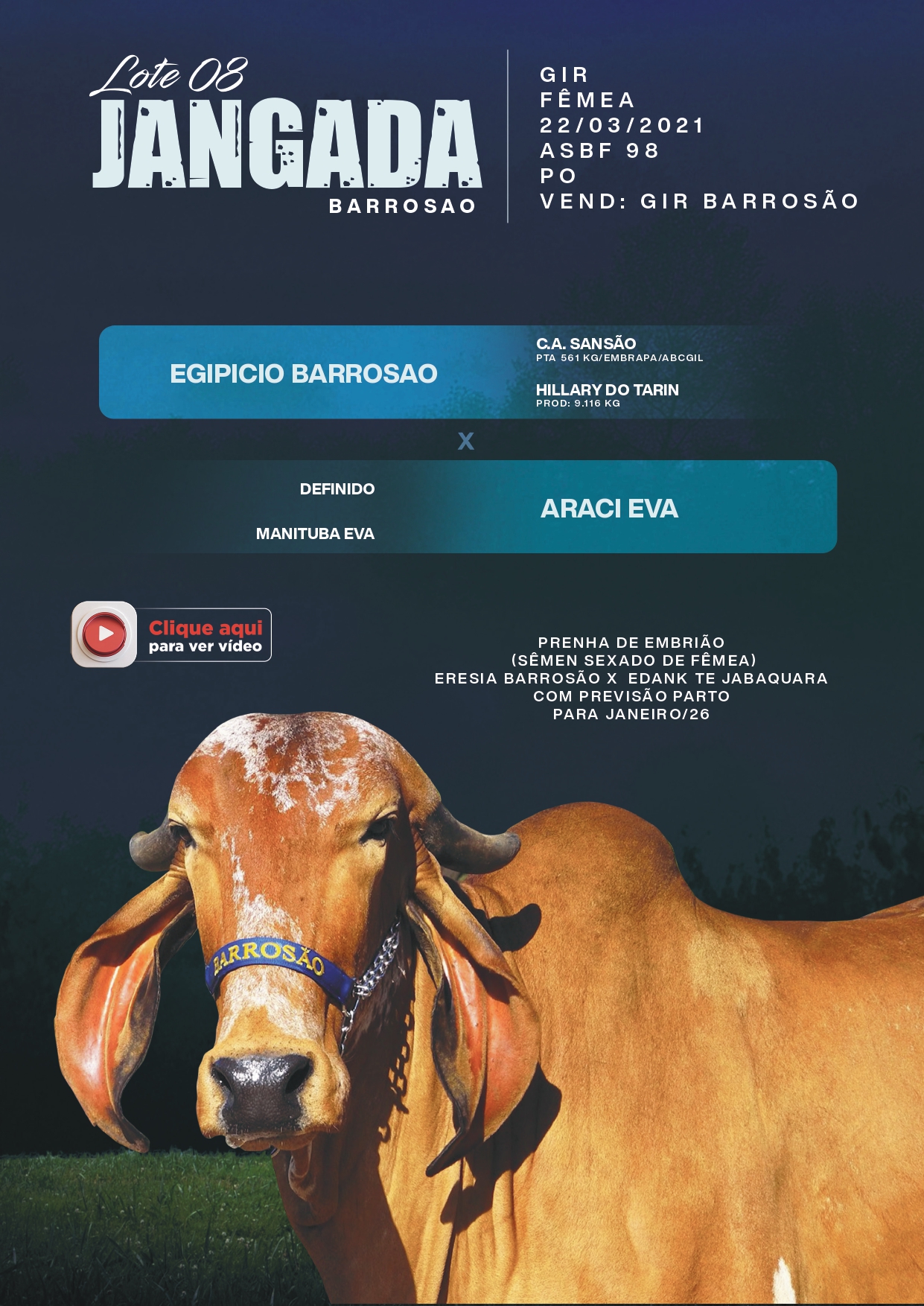 RETIRADA DO LOTE: A RETIRADA DOS ANIMAIS SERÁ APÓS A QUITAÇÃO DA COMISSÃO DE COMPRA, ENTRADA PARA O VENDEDOR E DEVOLUÇÃO DO CONTRATO DE COMPRA DEVIDAMENTE ASSINADO PELO COMPRADOR.