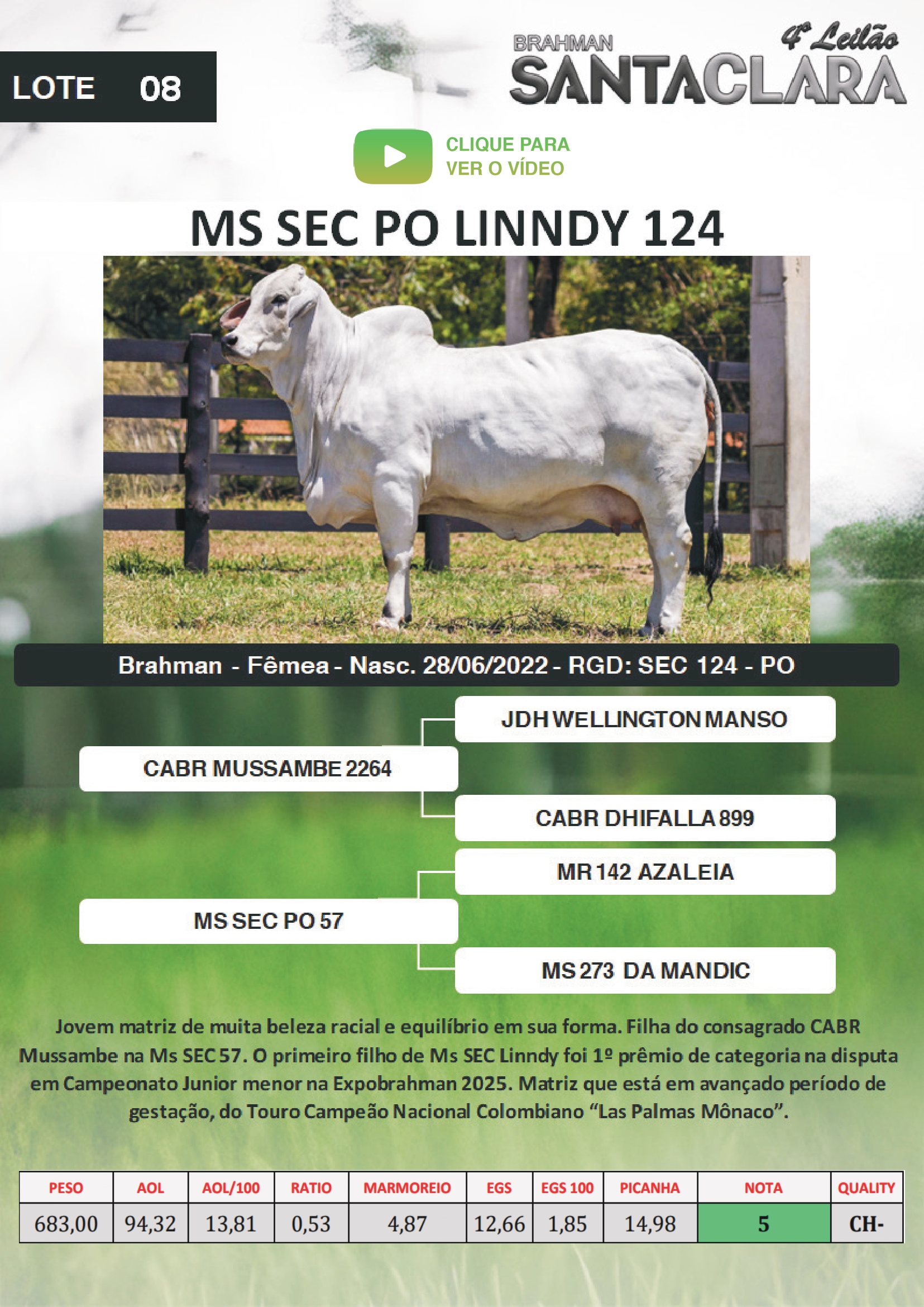 RETIRADA DO LOTE: A RETIRADA DOS ANIMAIS SERÁ APÓS A QUITAÇÃO DA COMISSÃO DE COMPRA, ENTRADA PARA O VENDEDOR E DEVOLUÇÃO DO CONTRATO DE COMPRA DEVIDAMENTE ASSINADO PELO COMPRADOR.