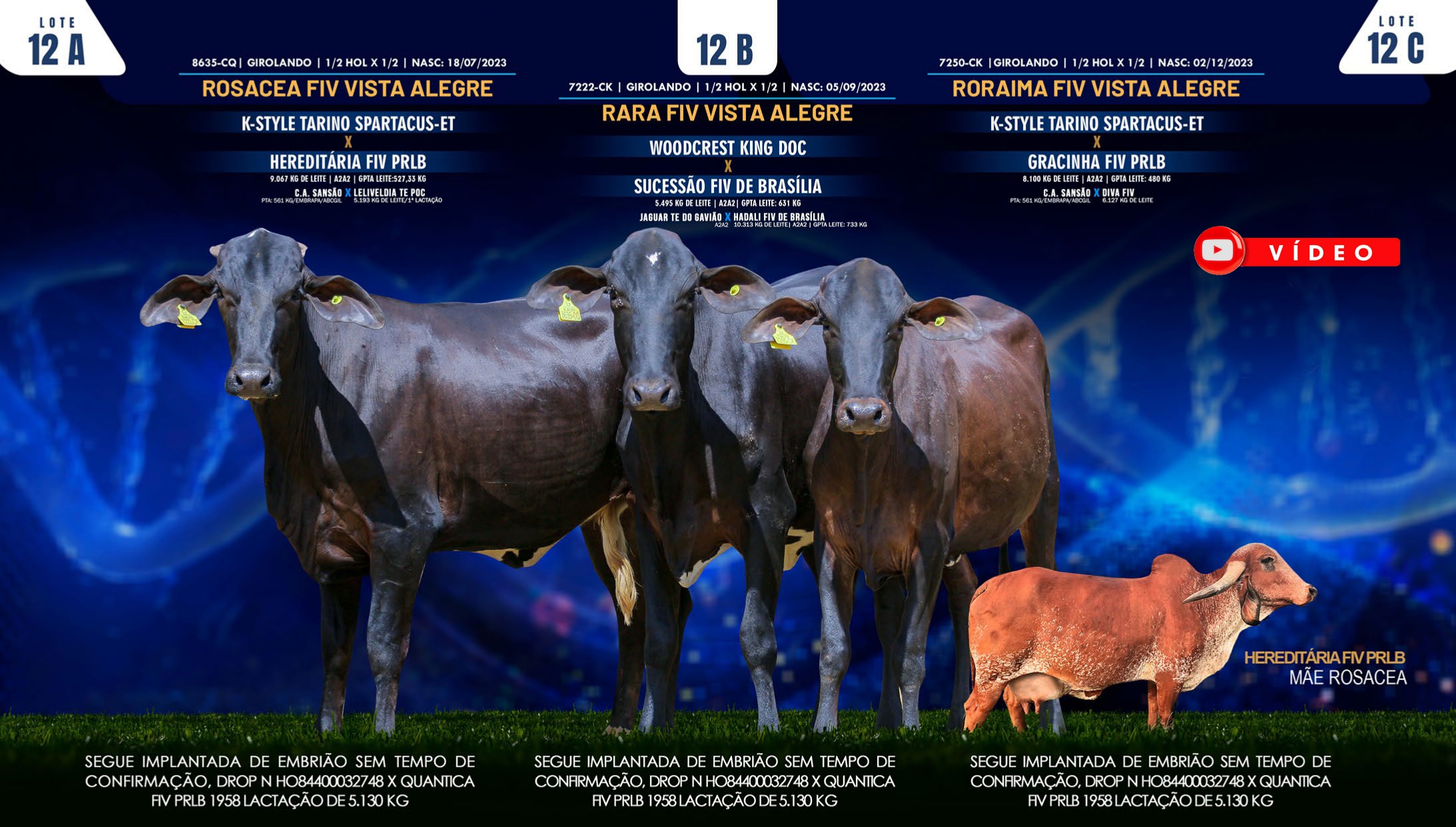 LOTE 12 - 8635-CQ - ROSACEA FIV VISTA ALEGRE, 7222-CK - RARA FIV VISTA ALEGRE E 7250-CK - RORAIMA FIV VISTA ALEGRE