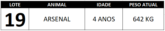 RETIRADA DO LOTE: A RETIRADA DOS ANIMAIS SERÁ APÓS A QUITAÇÃO DA COMISSÃO DE COMPRA, ENTRADA PARA O VENDEDOR E DEVOLUÇÃO DO CONTRATO DE COMPRA DEVIDAMENTE ASSINADO PELO COMPRADOR.