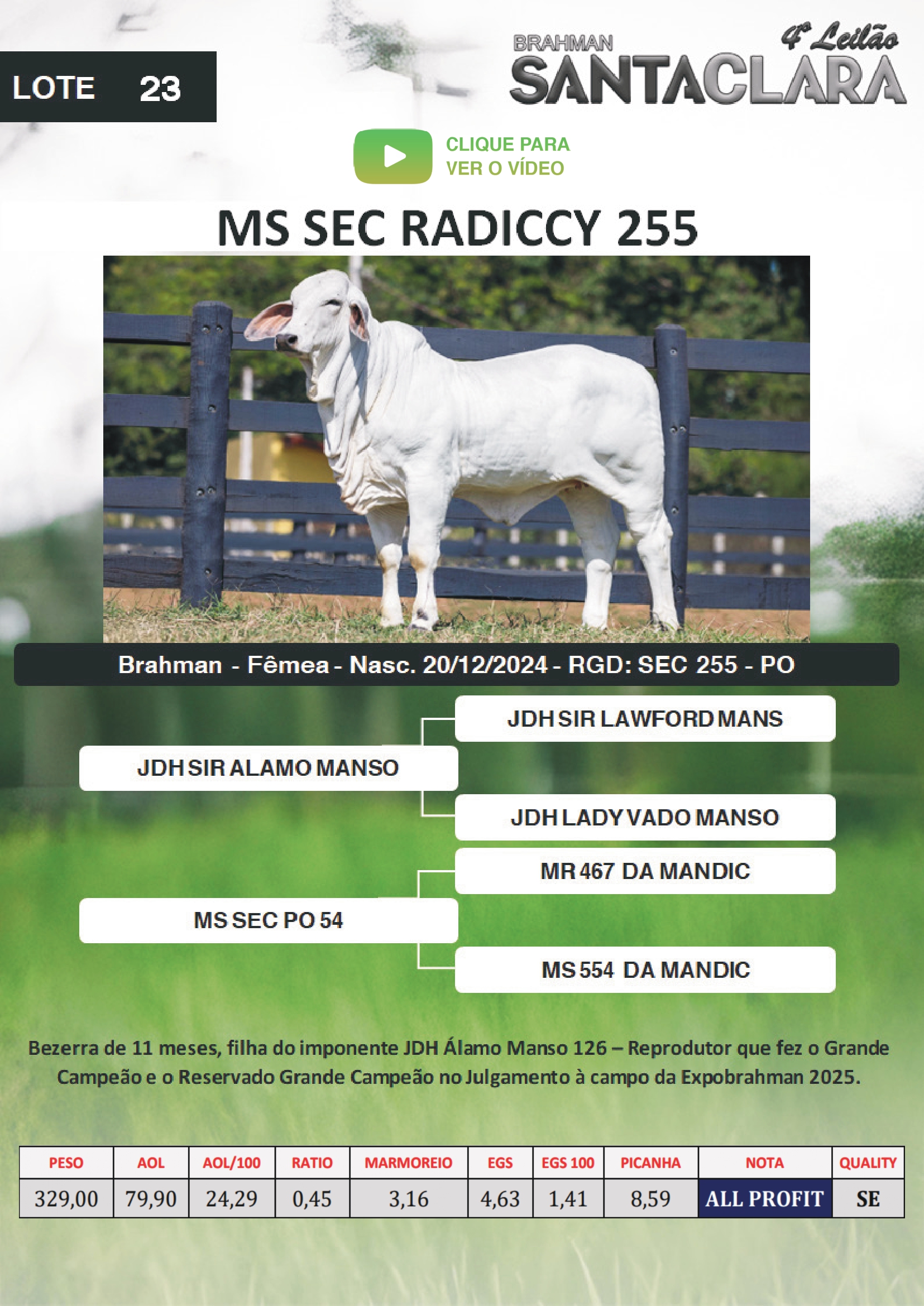 TODAS AS INFORMAÇÕES DO LOTE SÃO DE RESPONSABILIDADE DO VENDEDOR