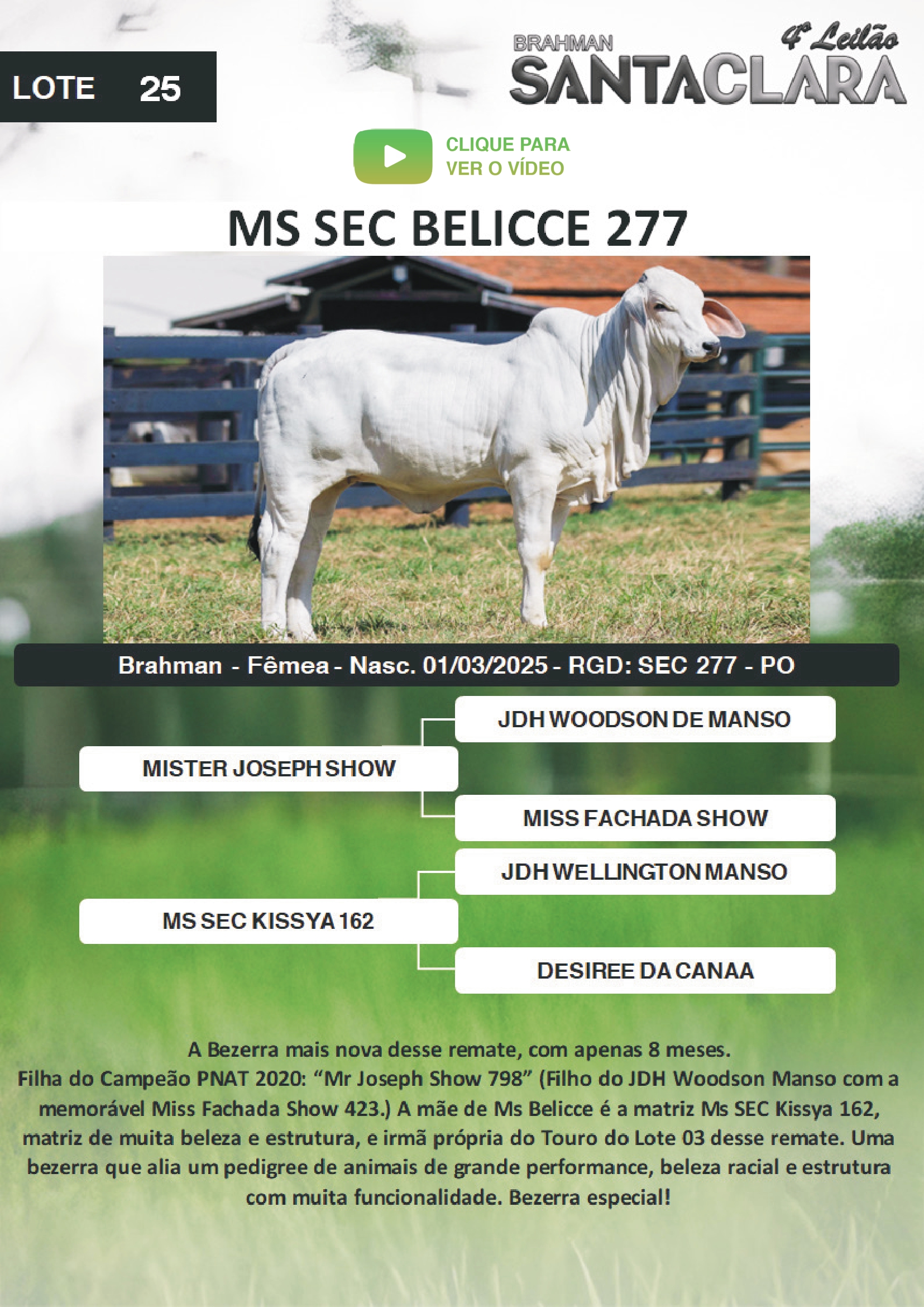 RETIRADA DO LOTE: A RETIRADA DOS ANIMAIS SERÁ APÓS A QUITAÇÃO DA COMISSÃO DE COMPRA, ENTRADA PARA O VENDEDOR E DEVOLUÇÃO DO CONTRATO DE COMPRA DEVIDAMENTE ASSINADO PELO COMPRADOR.