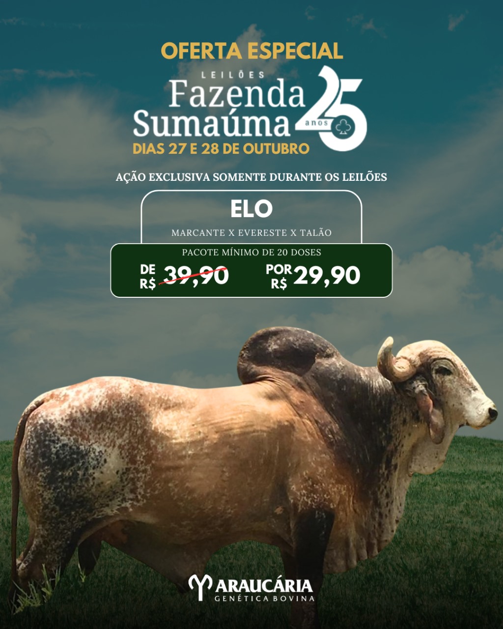 LOTE 29 - PACOTE COM 20 DOSES DE SÊMEN DO SUMAUMA ELO TE - 29,90 A DOSE