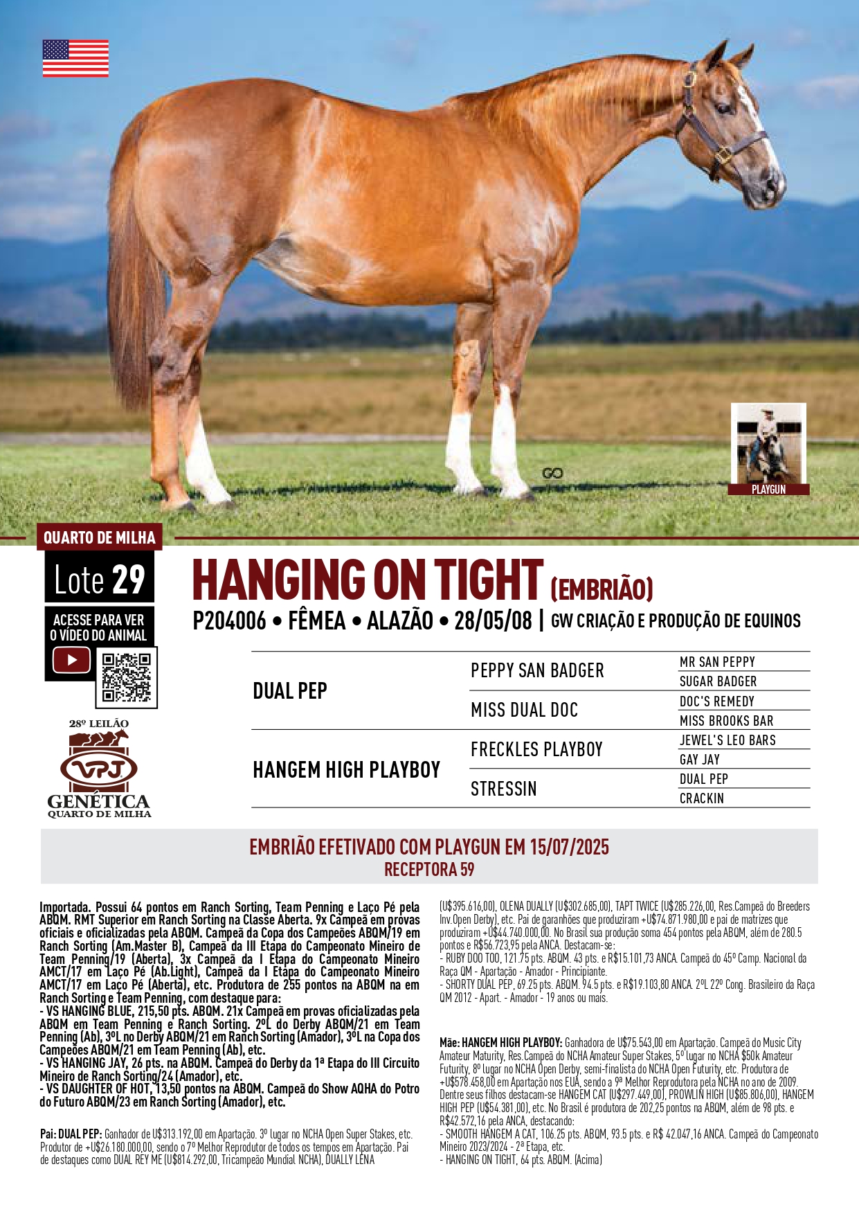 LOTE 29E - EMBRIÕES - HANGING ON TIGHT