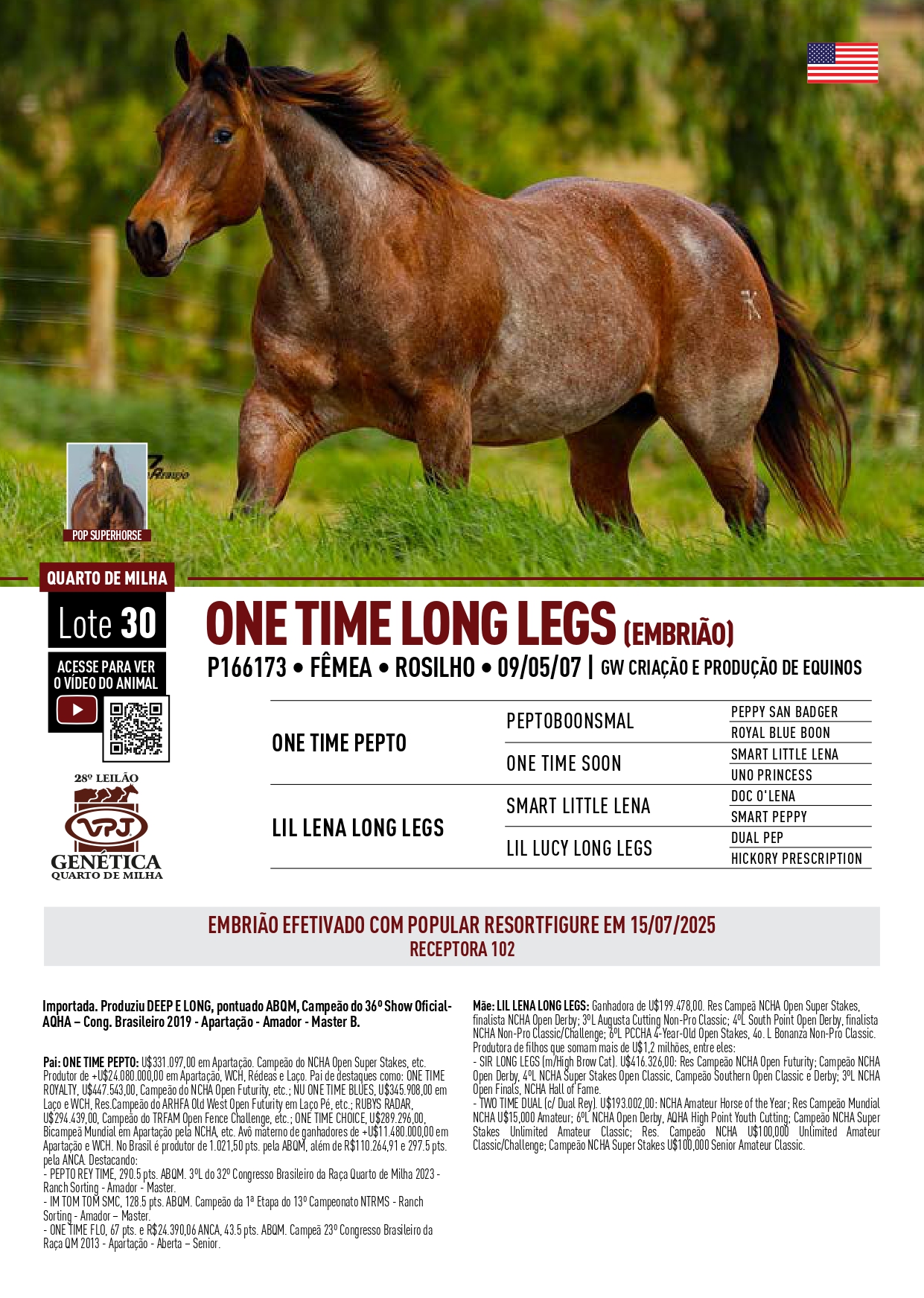 LOTE 30E - EMBRIÕES - ONE TIME LONG LEGS