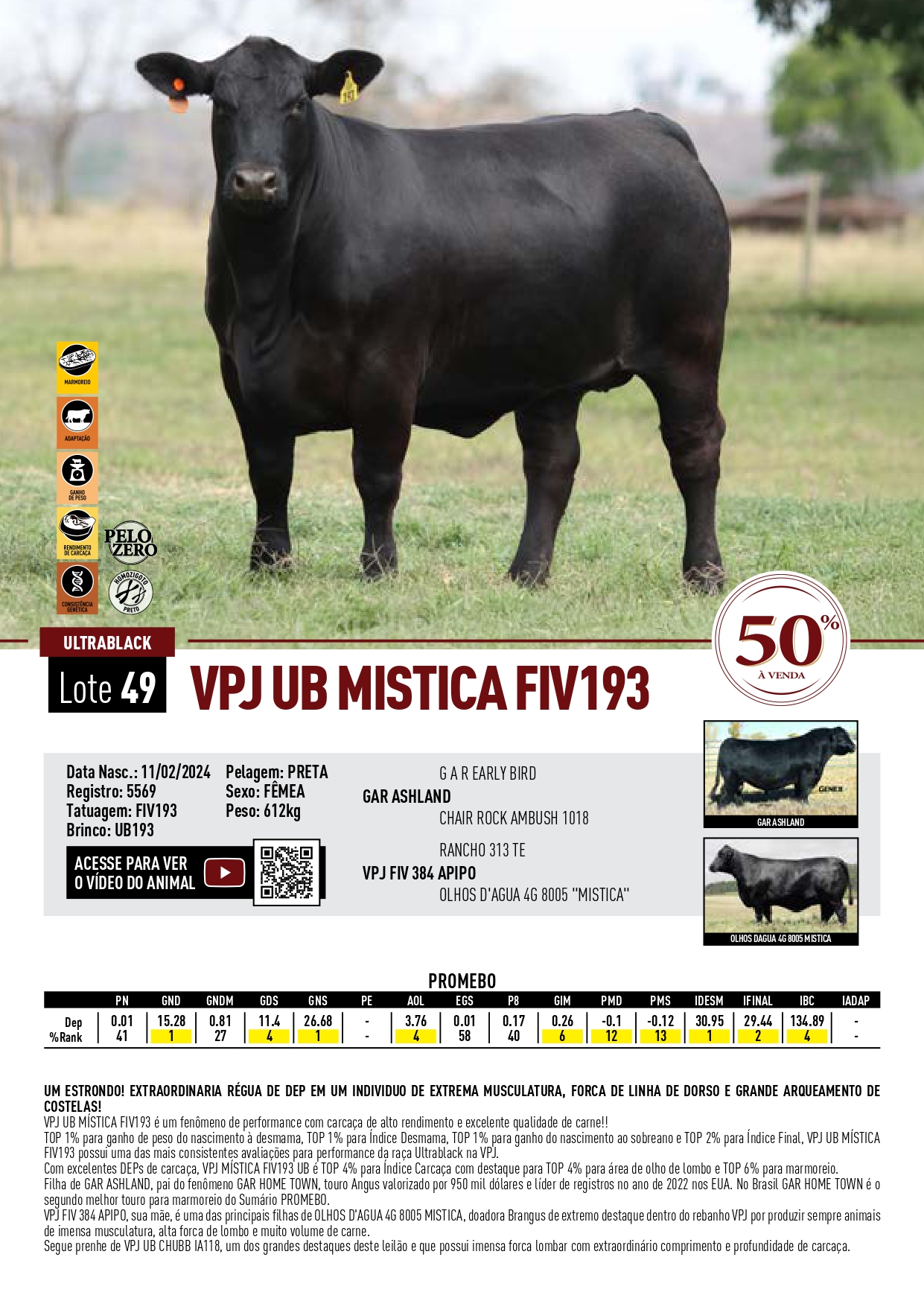 LOTE 49 - VENDA 50% - VPJ UB MISTICA FIV193